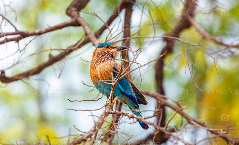 Индийская птица-роллер на дереве, Индия