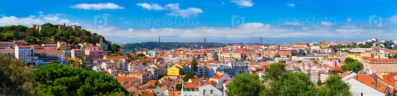 Панорама Лиссабона с точки зрения Мирадору-дус-Барруш с облаками. Лиссабон, Португалия