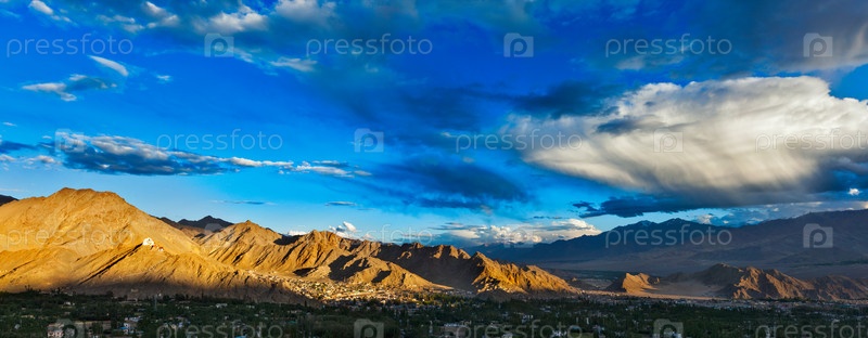 Закатная панорама города Лех. Ладакх, Джамму и Кашмир, Индия