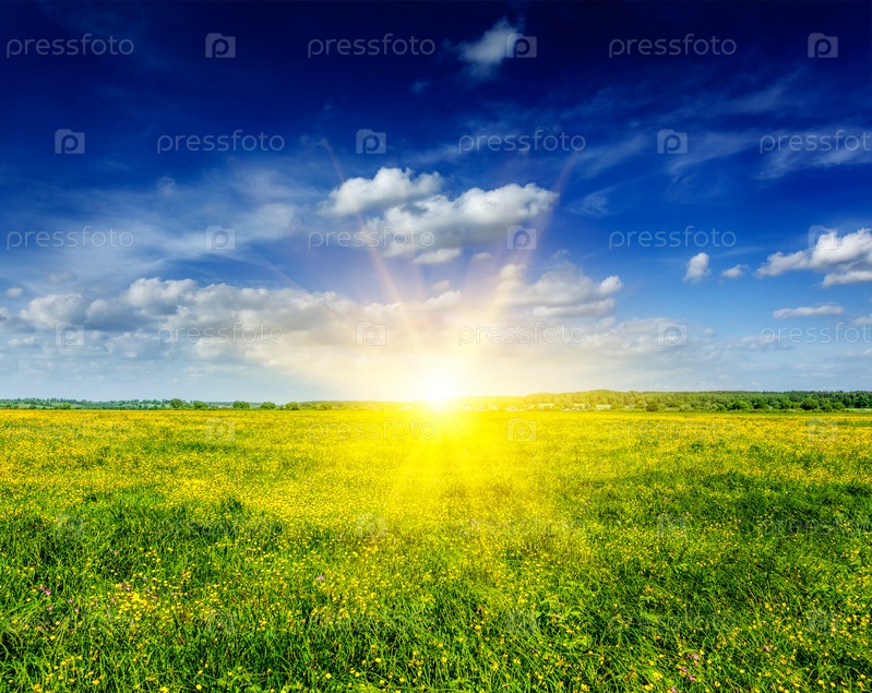 Весенний летний фон - цветущий полевой луг
