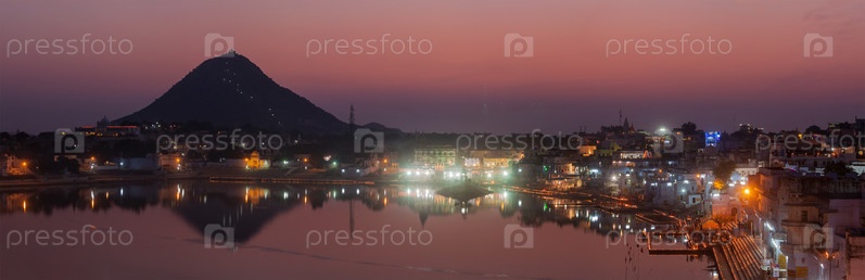 Панорама Священного озера Пушхар (Сагар) и гатов города Пушка