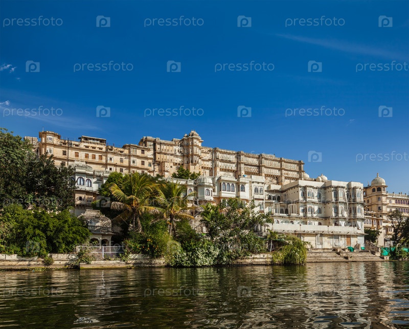 Вид на городской дворец с озера. Удайпур, Раджастхан, Индия