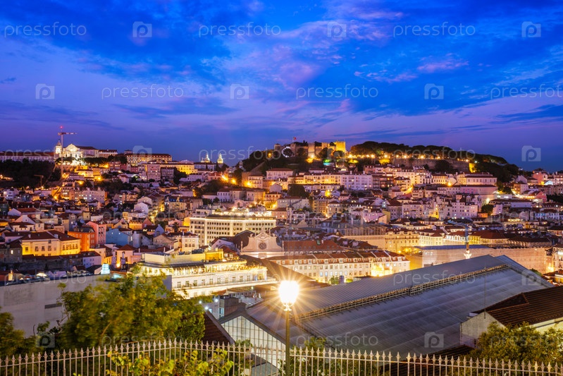 Вид на Лиссабон со смотровой площадки Мирадору-де-Сан-Педро-де-Алькантара. Лиссабон, Португалия