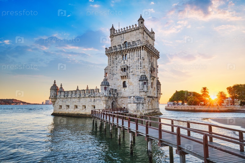 Башня Белен на берегу реки Тежу на закате. Лиссабон, Португалия