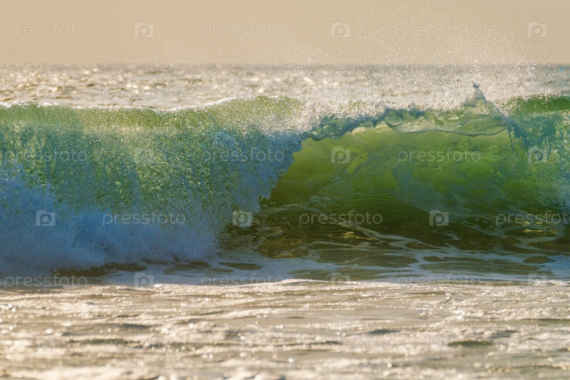 Разбивающаяся океанская волна на закате
