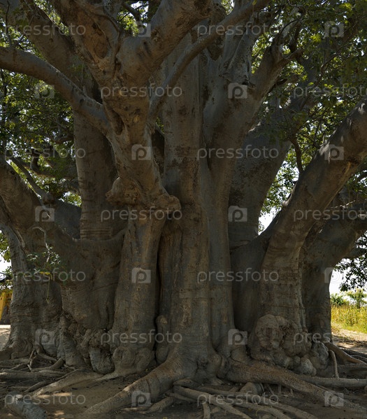 Западная Африка. Сенегал. Священный баобаб лицевой - один из старейших баобабов, которому, по разным оценкам, около 850 лет. Внутри дерева находится большая емкость, в которой живут летучие мыши