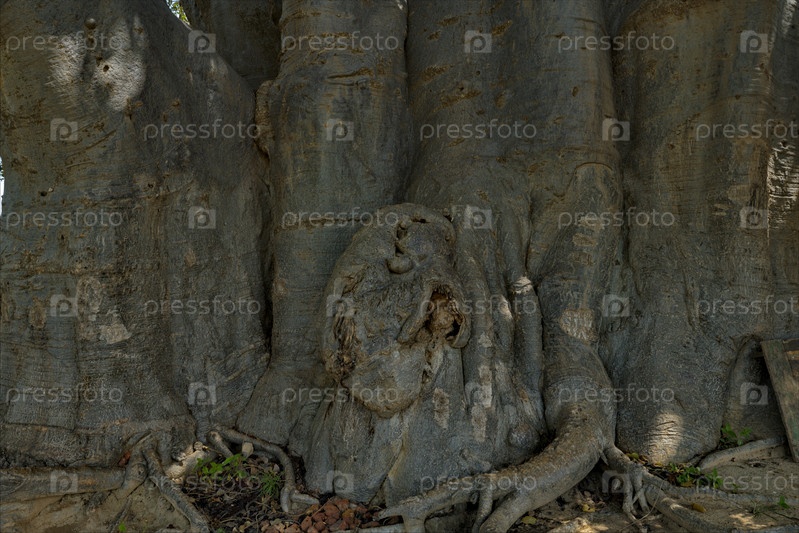 Западная Африка. Сенегал. Священный баобаб лицевой - один из старейших баобабов, которому, по разным оценкам, около 850 лет. Внутри дерева находится большая емкость, в которой живут летучие мыши