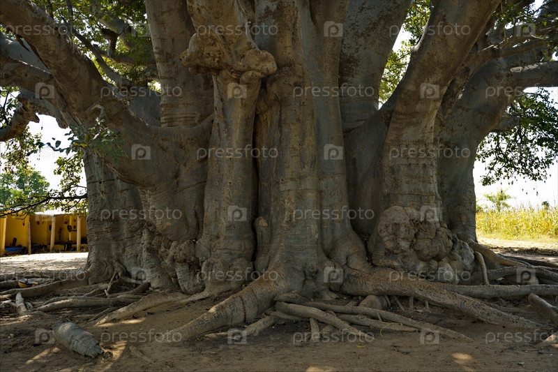 Западная Африка. Сенегал. Священный баобаб лицевой - один из старейших баобабов, которому, по разным оценкам, около 850 лет. Внутри дерева находится большая емкость, в которой живут летучие мыши