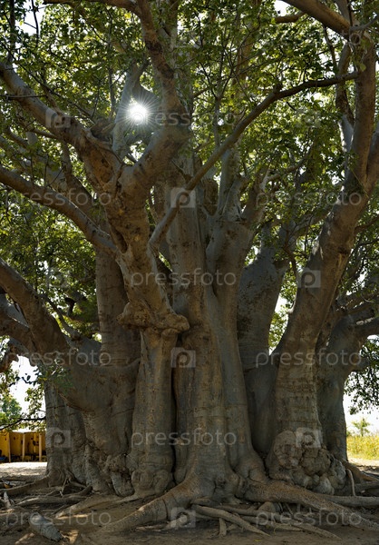 Западная Африка. Сенегал. Священный баобаб лицевой - один из старейших баобабов, которому, по разным оценкам, около 850 лет. Внутри дерева находится большая емкость, в которой живут летучие мыши