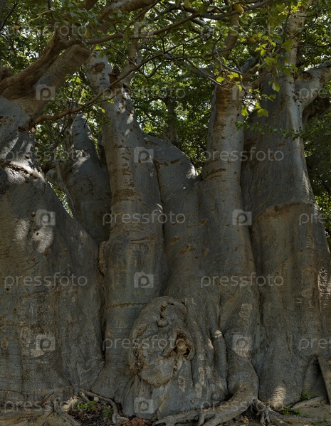 Западная Африка. Сенегал. Священный баобаб лицевой - один из старейших баобабов, которому, по разным оценкам, около 850 лет. Внутри дерева находится большая емкость, в которой живут летучие мыши