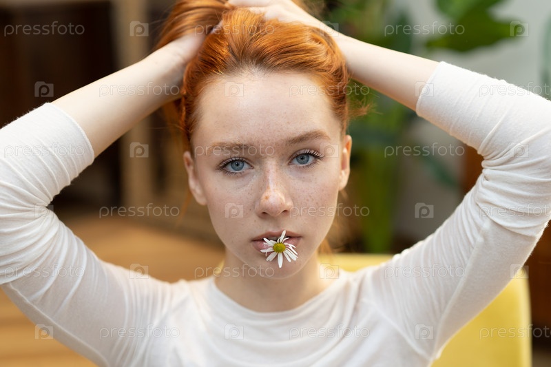 Портрет молодой красивой женщины с рыжими волосами в студии