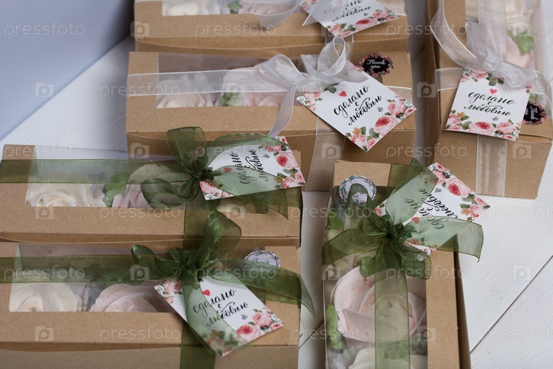 Коробочки с домашним зефиром. Связано скотчем. Видна фирменная бирка предпринимателя. Зефирные цветы. Розы из зефира. Уникальный подарок