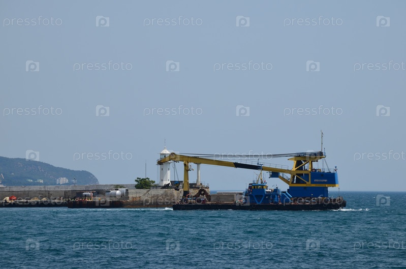 Плавучий кран у причала Ялтинского морского торгового порта, Ялтинский маяк, Крым