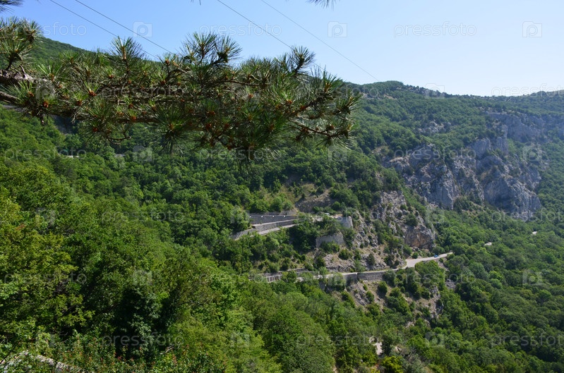 Серпантин шоссе в горах Крыма в районе Ялты