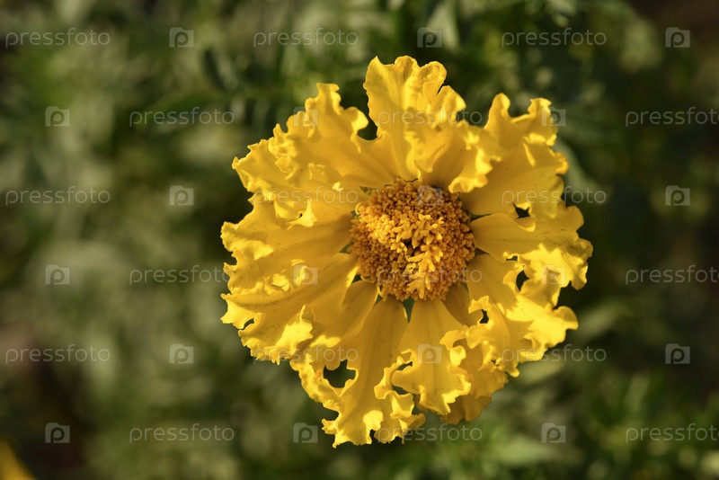 Бархатцы прямостоячие. Желтые цветы бархатцев в летнем саду. Крупные желтые цветы