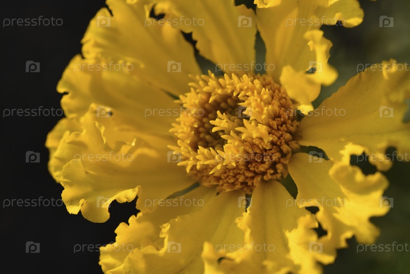 Бархатцы прямостоячие. Желтые цветы бархатцев в летнем саду. Крупные желтые цветы