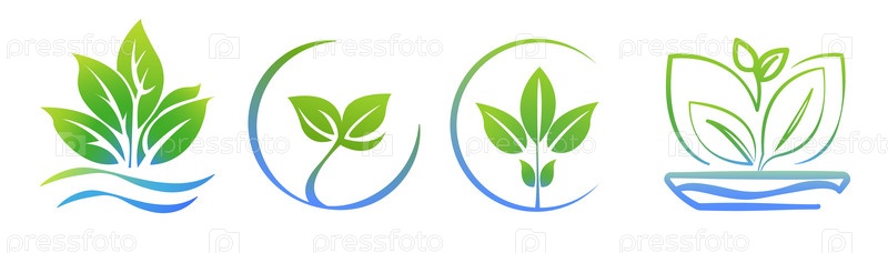 Набор шаблонов логотипа гидропоники аэропонный 4 в 1, значок здорового питания, органический огород. Экологичное выращивание. листья, логотип листа. Векторная иллюстрация