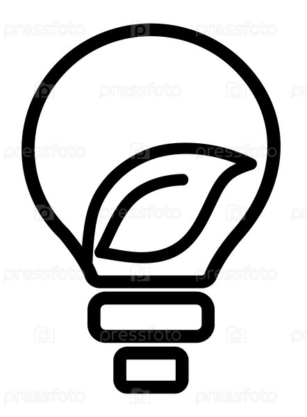 Значок устойчивой экологической энергии. Сияющая электрическая экологическая лампочка с листом внутри. Иди силуэт трубки зеленой лампы. Редактируемый штрих. Линейная векторная иллюстрация. Дизайн на белом фоне. ЭПС 10