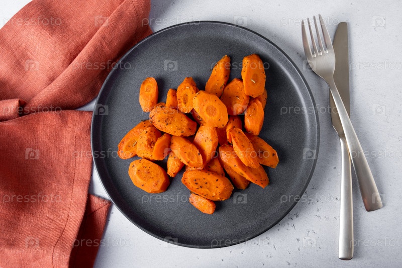 Запеченная морковь лежит на тарелке