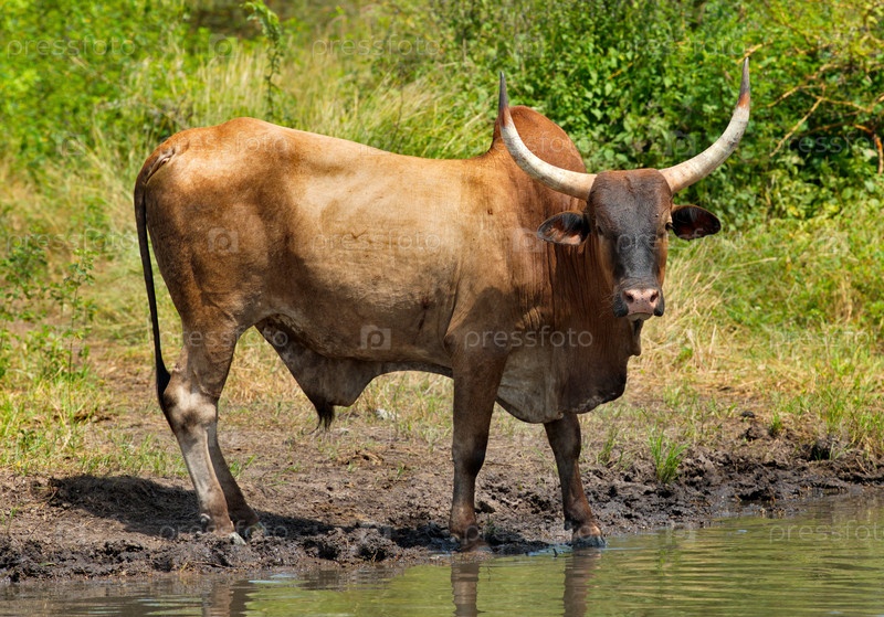 Западная Африка. Сенегал. Бык Зебу с большим горбом и рогами