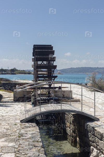 Древняя водяная мельница в карстовой воронке у моря (Греция, Аргостоли, Кефалония)