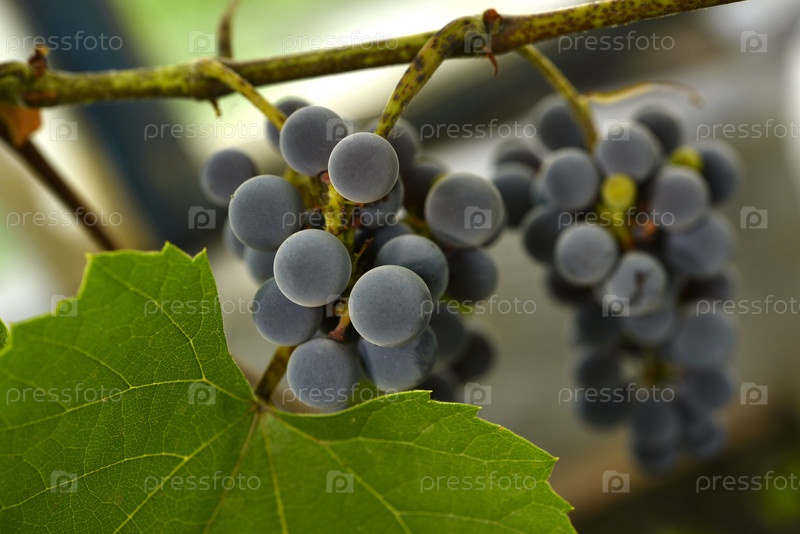 Плоды молодого винограда на лозе. Фиолетовые плоды домашнего винограда