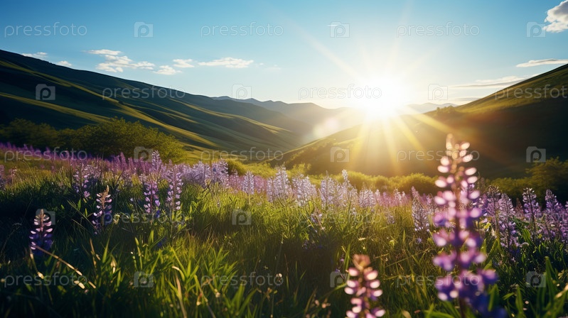 Захватывающие яркие луга. Красочный цветущий пейзаж, залитый теплыми объятиями солнечного света