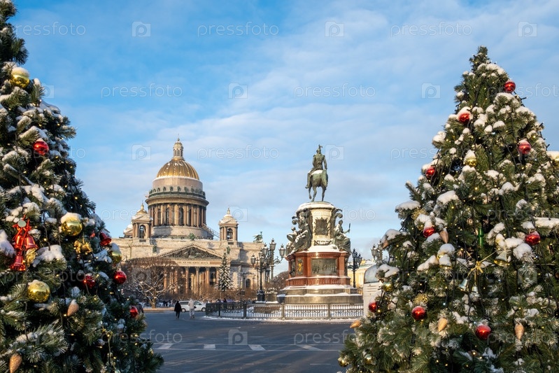 Вид на Исаакиевский собор и памятник Николаю 1