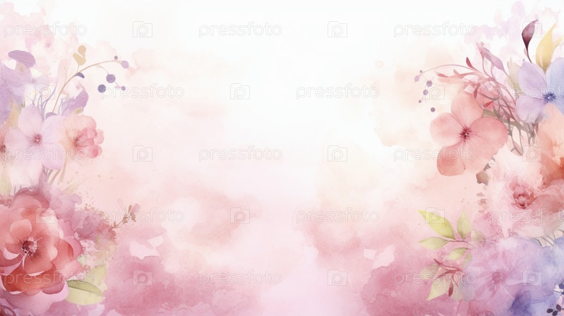 Флаер, приглашение, фон в пастельных тонах с копировальным пространством посередине и нежными цветами по бокам, выполнен акварелью