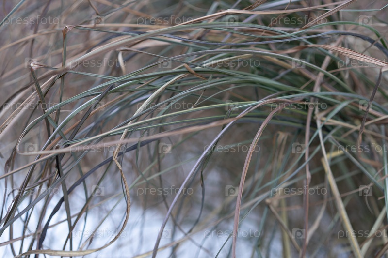 Сухая желтая трава на улице зимой