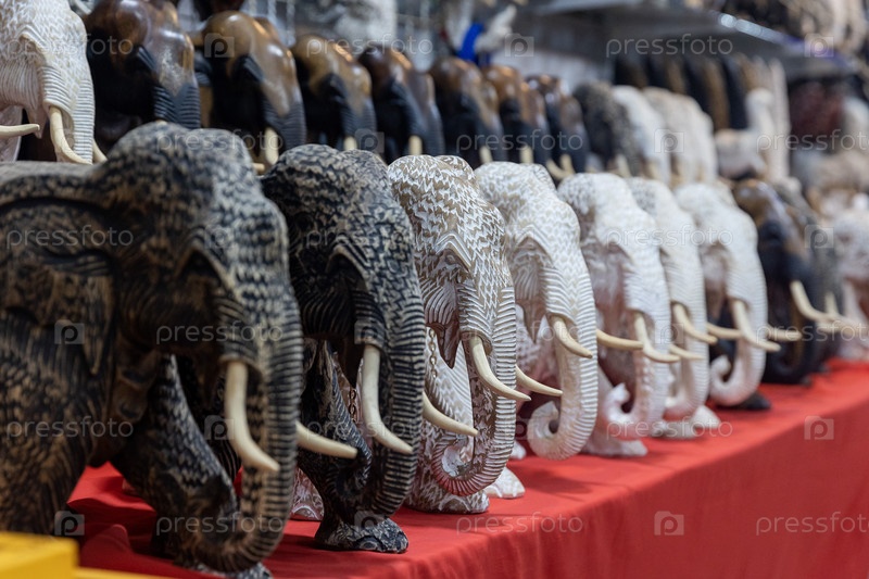 Таиланд.Као-Лак.Статуи слонов в сувенирном магазине.Таиланд.Као-Лак.Фигурки слонов в сувенирном магазине