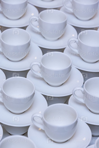 Россия. Санкт-Петербург. Чашки с блюдами на столе. Россия. Петербург. Чаши и тарелки на столе