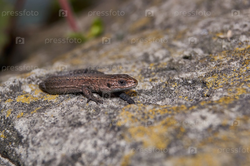 Ящерица быстрая или обыкновенная (лат. Lacerta agilis) греется на теплом камне