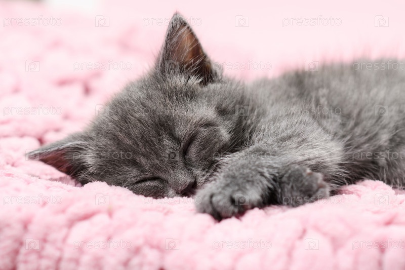 Портрет котенка крупным планом. Маленький спящий котенок. Селективный фокус
