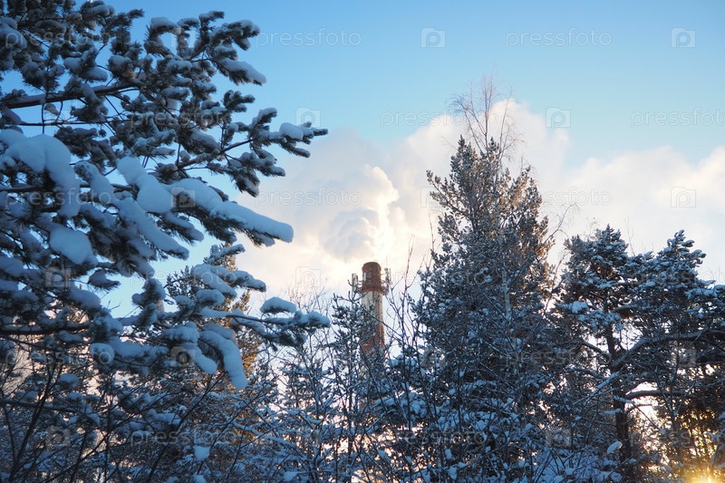 Дым из заводской трубы. Экологическое загрязнение. Выбросы в воздух загрязняют лес. Промышленные отходы. Выбросы металлургических заводов. Смог и плохая экология. Центральное отопление ТЭЦ зимой