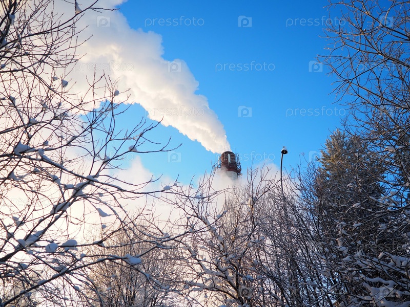 Дым из заводской трубы. Экологическое загрязнение. Выбросы в воздух загрязняют лес. Промышленные отходы. Выбросы металлургических заводов. Смог и плохая экология. Центральное отопление ТЭЦ зимой