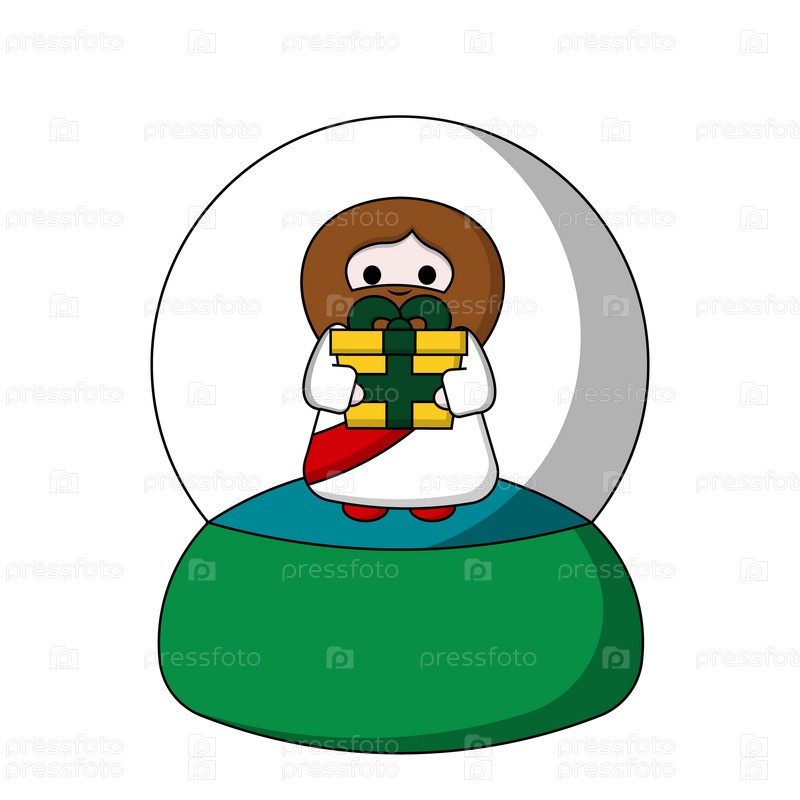 Снежный шар с милым Богом Иисусом Христом с цветной подарочной коробкой