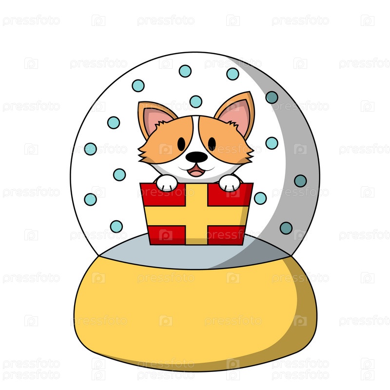 Снежный шар с милой собакой корги в цветной подарочной коробке