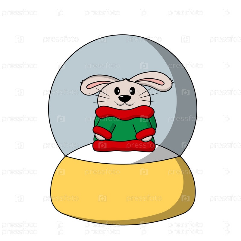 Снежный шар с милым кроликом в цветном свитере