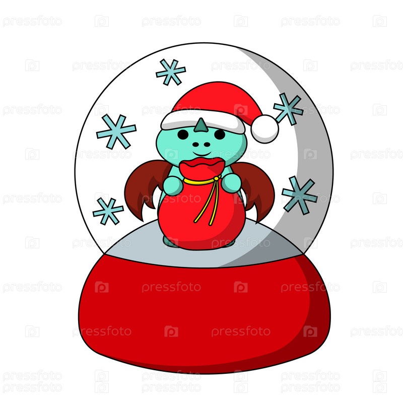 Снежный шар с милым драконом Сантой в цвете