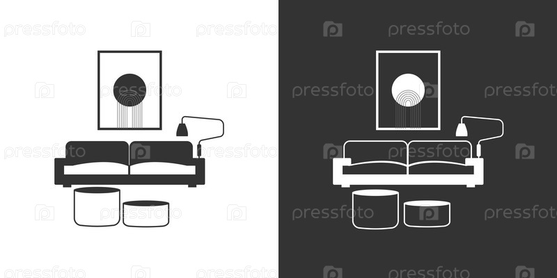 Иконка мебели для гостиной, черная и белая