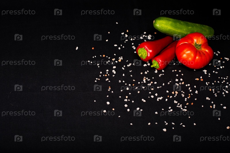 Овощи с соль на черной ткани