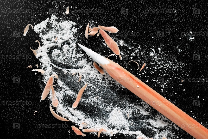 Белый карандаш на черном фоне, силуэт сердца