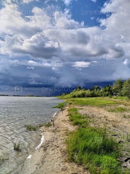 Грозовые облака над рекой Иртыш в Омской области