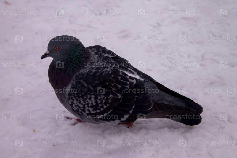Голубь на снегу