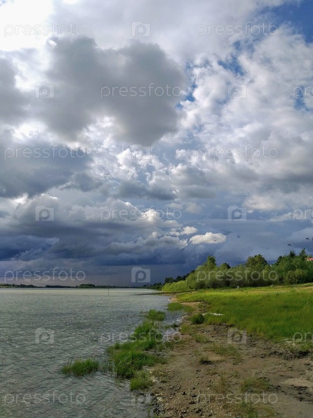 Грозовые облака над рекой Иртыш в Омской области