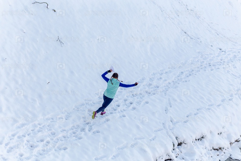Молодая женщина участвует в тренировках по зимнему ориентированию в городских условиях. Деятельность контрольно-пропускного пункта по ориентированию на открытом воздухе