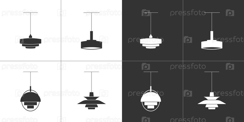 Набор иконок подвесных ламп, черные и белые