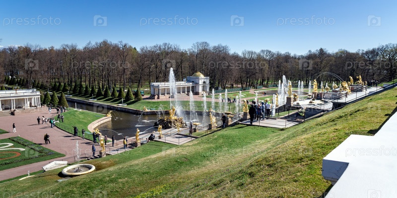 Вид на фонтанный комплекс Петергофского дворца