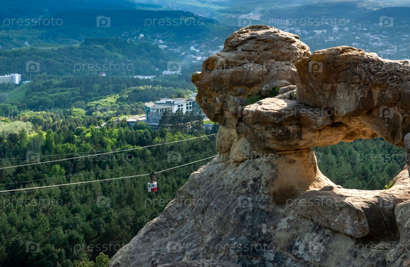 Кисловодский национальный парк, скалы на горе Красное Солнце, кабинка канатной дороги. Кисловодск, Россия